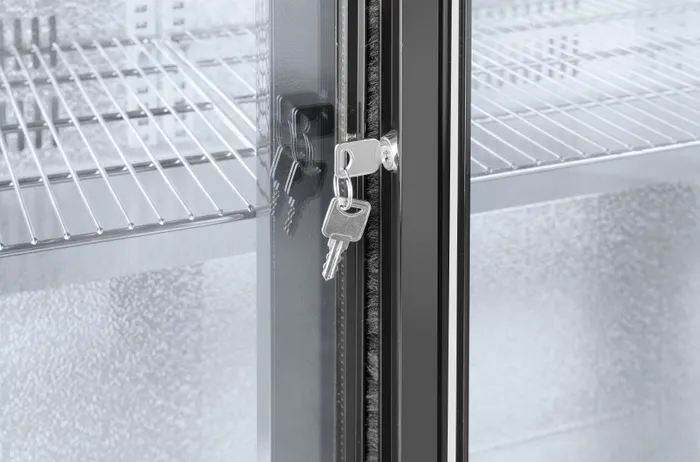 Ruime barkoelkast met gehard glazen deuren. Voorzien van LED verlichting om producten goed te presenteren Lees meer