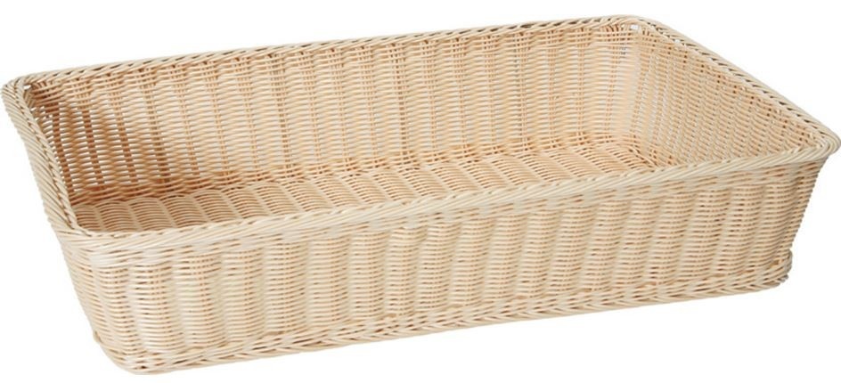 Rechthoekige broodmand voor de presentatie van broodjes met de afmeting GN1/1 530x320 mm. Eventueel te koop met roltop Lees meer