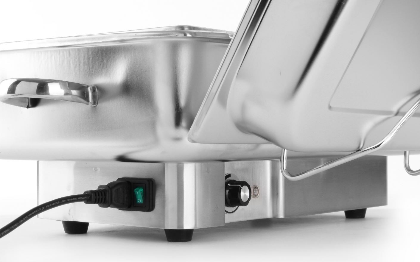 Verder is deze elektrische Chafing Dish uitgevoerd met een droogkookbeveiliging met een indicatielampje. Besturingspaneel is verzonken om het schoon en droog te houden. Aan/uit schakelaar met geïntegreerde indicatielamp