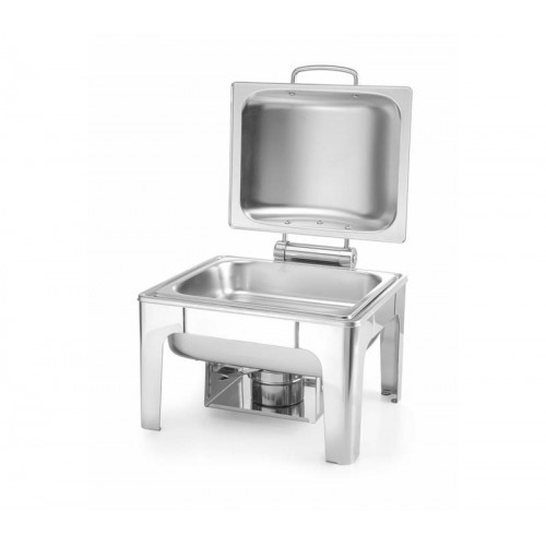 De chafing dishes en accessoires zijn geheel gemaakt van duurzaam roestvast staal. De deksel is voorzien van een frictierem en kan daardoor in elke gewenste positie geplaatst worden. De deksel kan worden verwijderd om het schoonmaken te vergemakkelijken. Wordt geleverd met verwijderbare waterpan, GN 1/2 65 mm diepe voedselpan en chafing dish brandstofhouder.