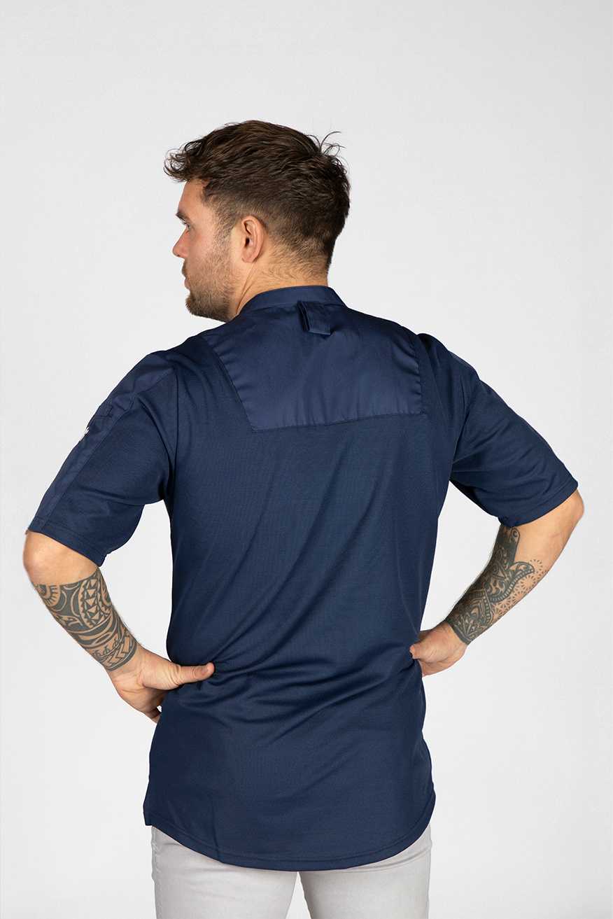 Ben jij opzoek naar comfortabele en trendy koksbuis? Dan is ons ICE model iets voor jou! Onze ICE is een t-shirt koksbuis, inclusief gebreide delen op de rug, borst en mouwen. Dit geeft je extra bewegingsvrijheid, waardoor het model comfortabel is om te dragen. Verder heeft het model een zak op de linkermouw, zodat je altijd klein keukengerei en een pen bij je kan dragen. Als extra heeft het ICE model een lus met een drukknoop op de rug, waar eventueel de halter van een schort door heen kan worden gehaald. Dit zorgt ervoor dat jouw schort niet zal schuiven en netjes op zijn plek blijft. Tot slot is dit t-shirtmodel ontworpen met YKK-drukknopen, de eerste keuze van de professionele wasserij. Kortom wil jij wat nieuws en koksbuis die comfortabel zit? Kies dan voor onze ICE. Deze koksbuis is geproduceerd van twill, een stevige weeftechniek gemaakt van 65% polyester en 35% katoen 210 g/m2. De achterkant, de borst en de onder mouwen van de buis zijn voorzien van piqué: 53% katoen, 47% polyester 185 g/m2. Omdat piqué een breisel is, zorgt het voor een fijne bewegingsvrijheid en is het materiaal ademend. Al de door ons gebruikte materialen zijn OEKOTEX standaard 100 gecertificeerd. De buis is geschikt voor industriële reiniging.