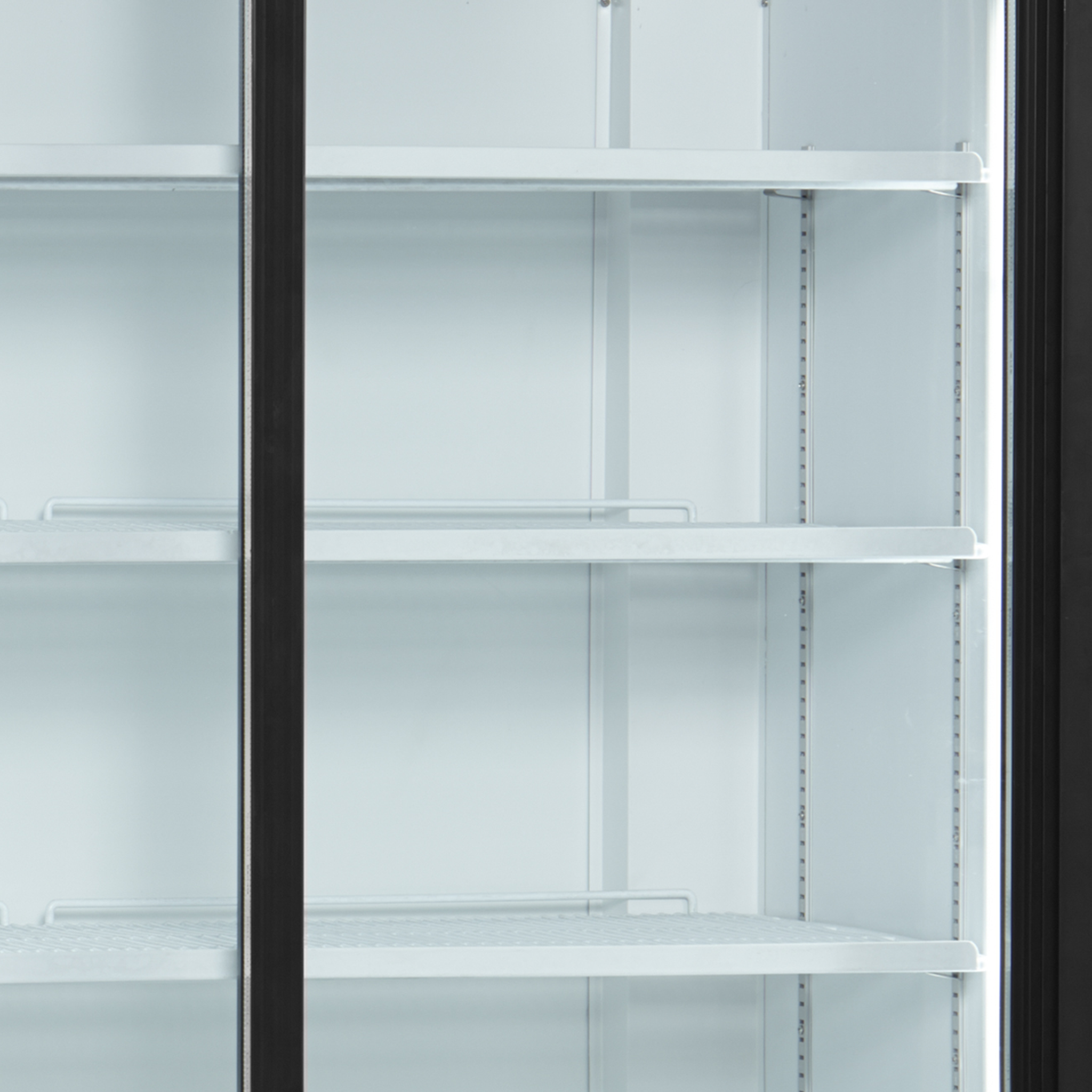 Zelfsluitende glazen schuifdeuren. Verlichte kap. Interne verticale verlichting. Instelbare planken. Instelbare voet. Geventileerde koeling Lees meer