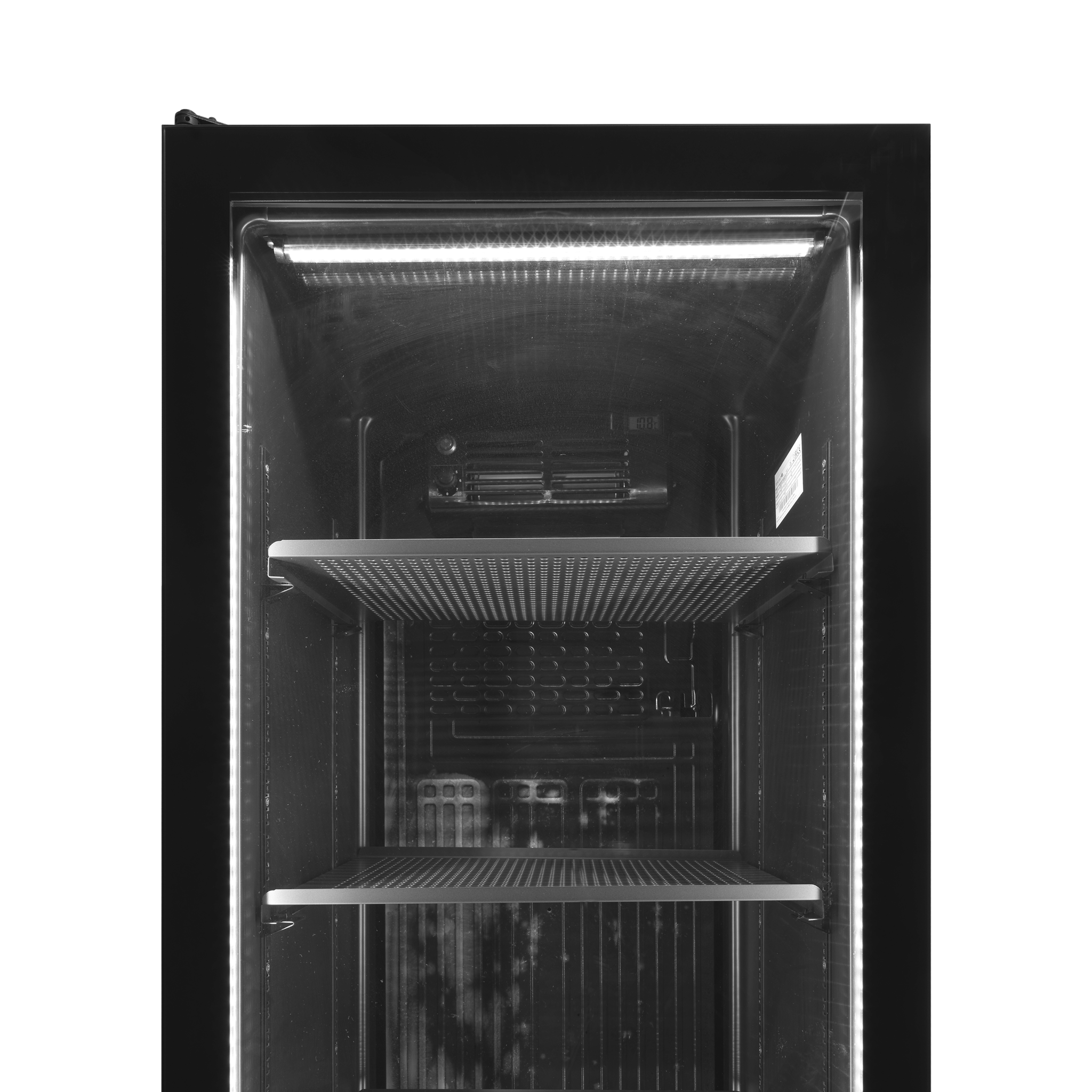 De SCU1425-serie flessenkoelers brengt betaalbare displaykoeling naar een nieuw kwaliteitsniveau. De zwarte buiten- en binnenzijde verlenen de koeler een elegant tintje. De koeler heeft een frameloze glazen deur over de hele hoogte, verstelbare planken en ledverlichting binnenin voor een optimale productpresentatie. Een koelsysteem met ventilator zorgt voor een gelijkmatige koeling van de hele kast. Wordt standaard geleverd met een rechts- of linksdraaiende deur.