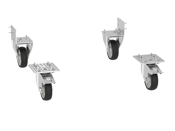 2 draaibare wielen met een diameter van 80 mm zorgen ervoor dat het apparaat eenvoudig is te verplaatsen. 2 wielen zijn uitgerust met een vastzetrem. De wielen worden direct in het apparaat geschroefd.