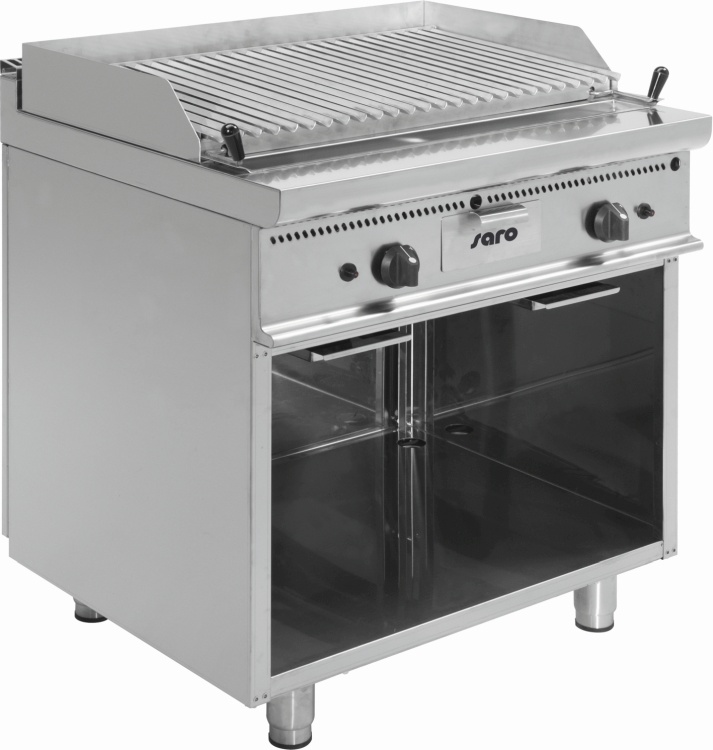 Gas Lavasteen Grill E7/BS2BA van het merk Saro. Het apparaat heeft een vermogen van 16kW en wordt geleverd inclusief lavastenen voor een unieke BBQ-smaak. RVS rooster met V-profiel Lees meer