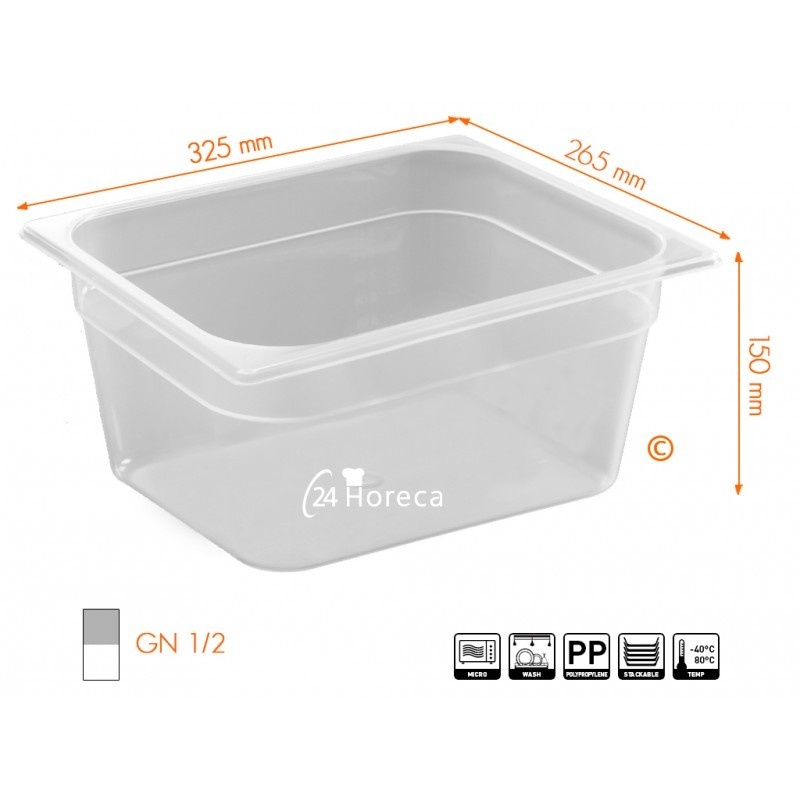 Voorraaddoos polypropyleen GN1/2 - 150mm diep | 265x325mm. | Profi Line