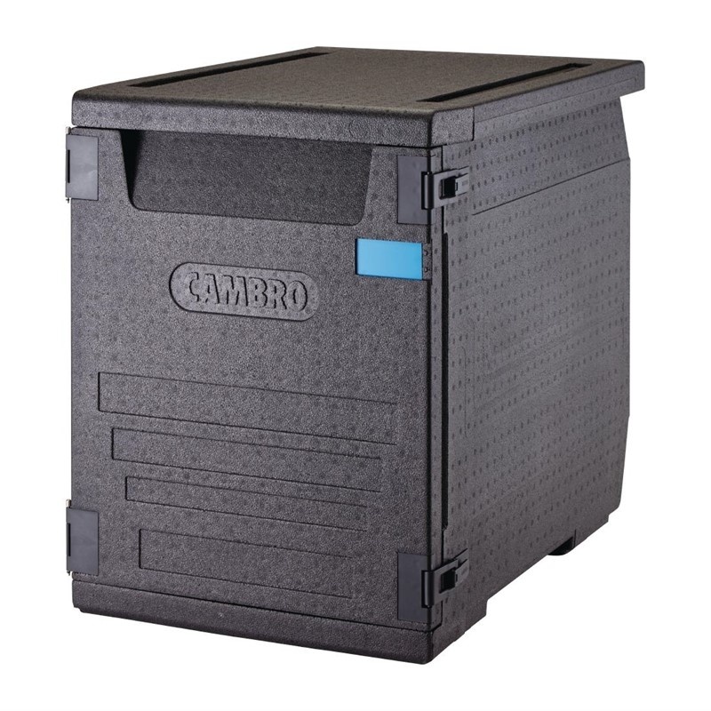 De voorlader is voorzien van een etikethouder waarin u labels kunt plaatsen voor een eenvoudige identificatie van de inhoud. Dankzij de stevige scharnieren en grendels kan de deur 270° open en vastgemaakt worden aan de zijkant van de voedselcontainer, waardoor de carrier gemakkelijk in en uitgeladen kan worden. De geïntegreerde handvatten zorgen ervoor dat de GoBox van alle 4 de kanten te dragen is, waardoor er minder risico is op fysieke belasting en letsel is.