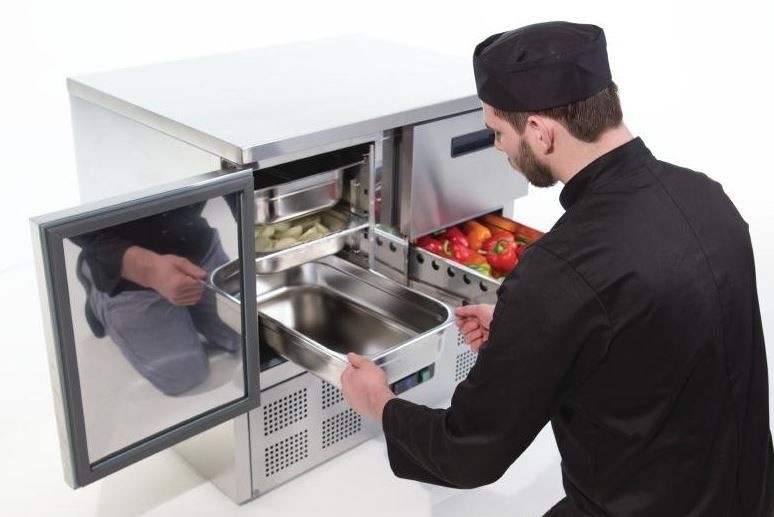 Polar Koelwerkbank met 1 deur en 2 laden 240 liter | +2°C tot +5°C | 88Hx90x70cm.
