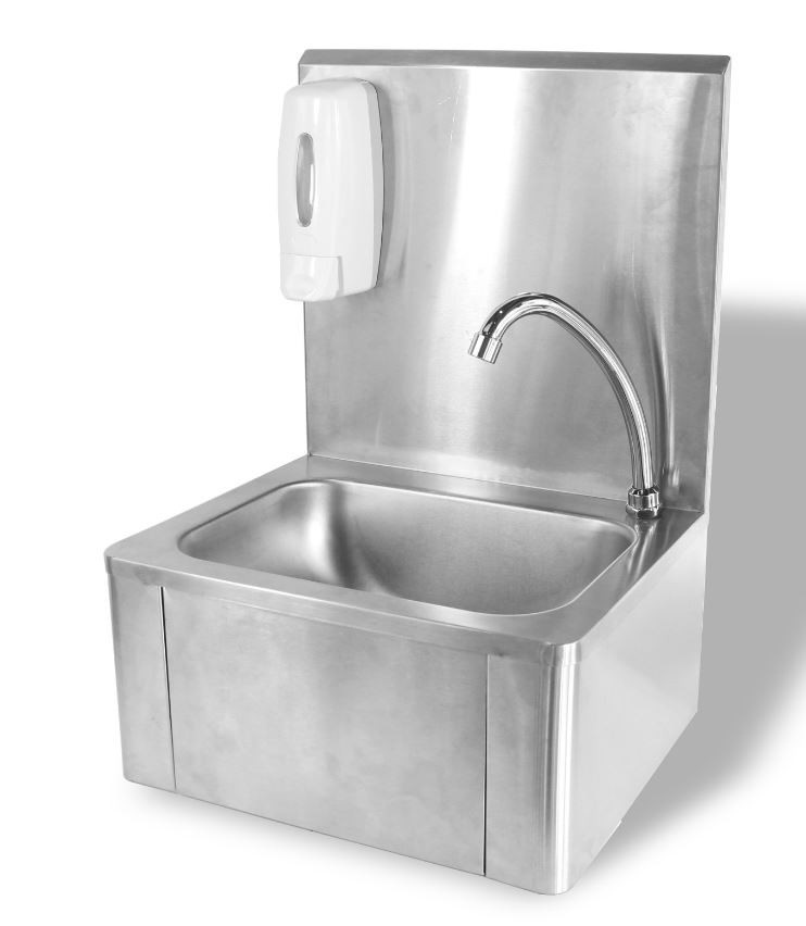 Wasbak met kniebediening en zeepdispenser | 400x335xH570mm.