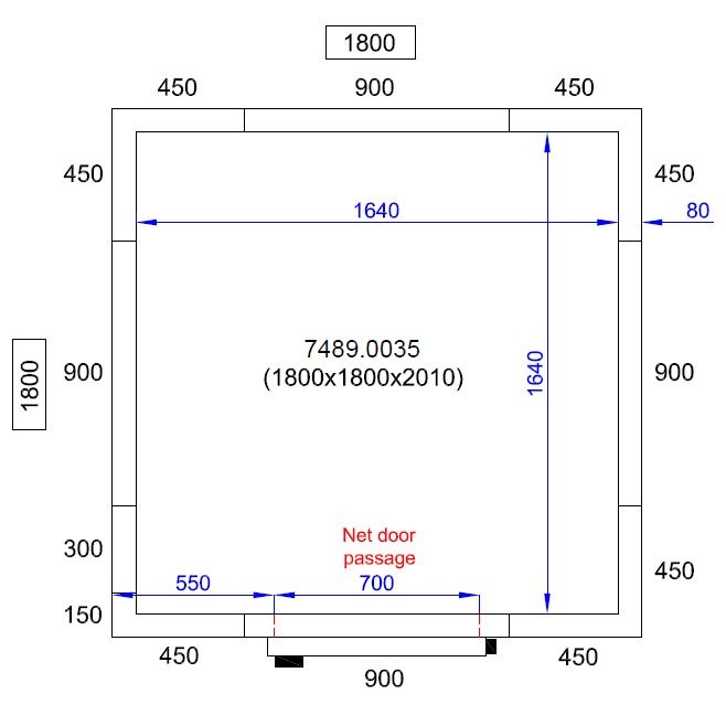 Koelcel - vriescel Proline | Inhoud 5m3 | 1800x1800x2010 mm.