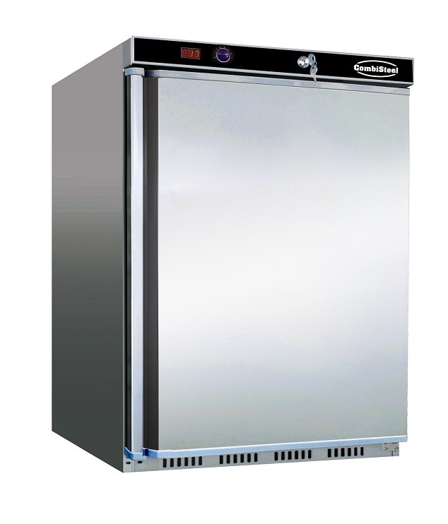 RVS koelkast met 1 deur en een inhoud van 130 liter met statische koeling. Uitgevoerd met een rechts scharnierende deur, die omkeerbaar is. Lees meer