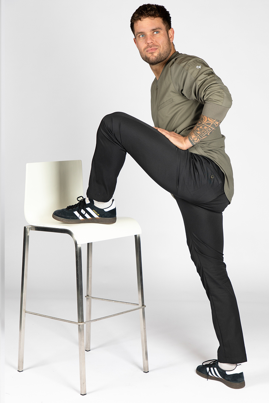 Deze koksbroek is ontworpen in samenwerking met vooraanstaande chefs. Het resultaat is een chino koksbroek met stretch, waardoor er optimale bewegingsvrijheid is. De stof behoudt zijn vorm en droogt snel. Met een verstelbare tailleband dankzij het trekkoord aan de binnenkant is een riem overbodig.