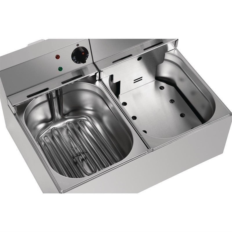 Veelzijdige en voordelige friteuses met beschermplaat en RVS deksels. Uitneembare, eenvoudig schoon te maken RVS oliereservoirs. Afzonderlijk bedienbare tanks voorkomen kruisbesmetting en werken energiebesparend in klantluwe periodes. Lees meer