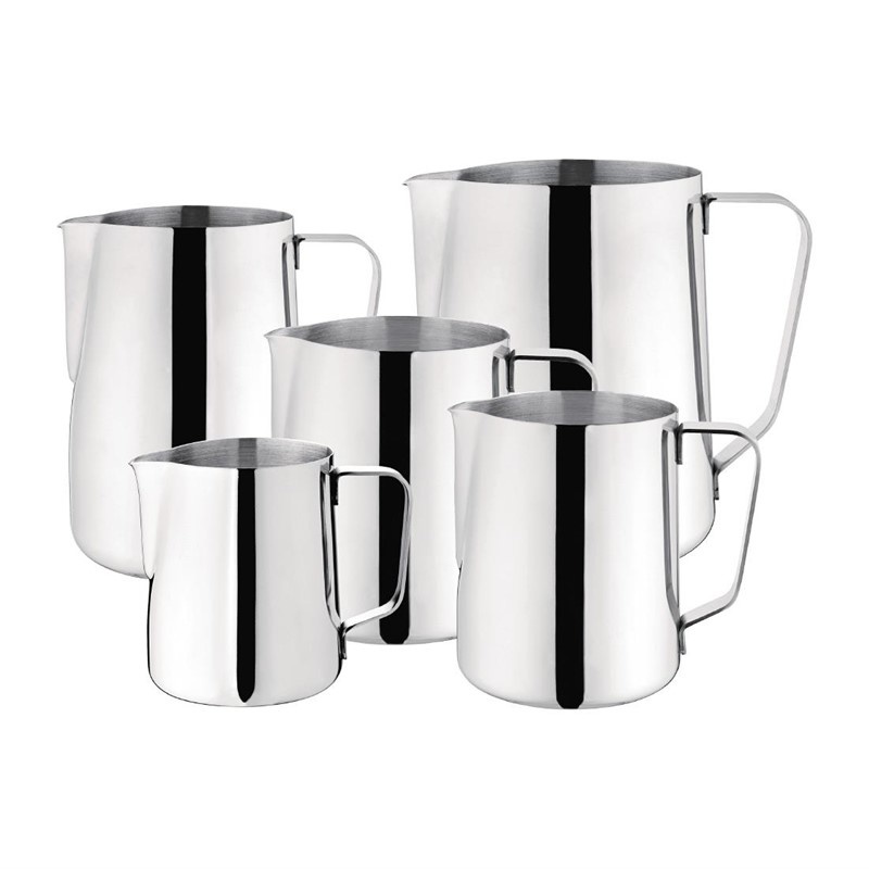 Olympia RVS melk- en waterkan ideaal voor barista's. Duurzaam, sterk en hittebestendig. Vaatwasserbestendig.
