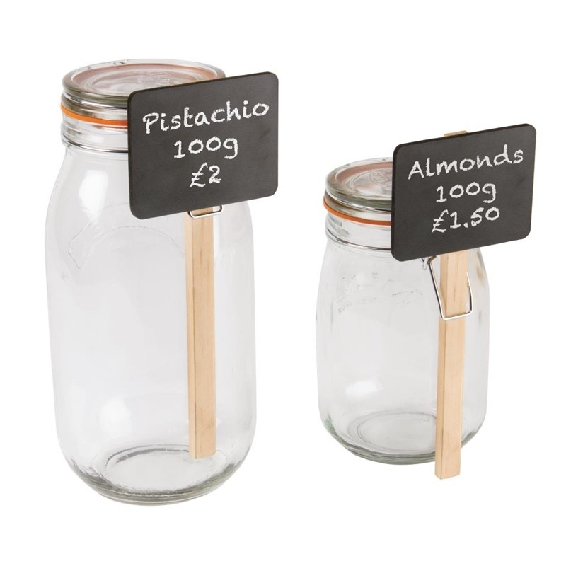Gebruik de bordjes bijvoorbeeld op het buffet, eventueel in combinatie met de mini krijtbordlabels (CL310) als betaalbaar en duurzaam alternatief voor papieren en kartonnen labels. Elke verpakking bevat een krijtbordje en een steel die in buffetten gezet kan worden, door de clip van een weckpot past of ergens anders ingeprikt kan worden. De krijtbordjes kunnen bijvoorbeeld gebruikt worden om ingrediënten, kruiden of namen te noteren.