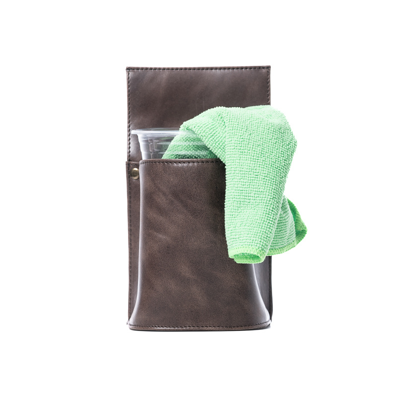 Holster voor poetsdoek met plastic beker | Zeer stevig rundleer