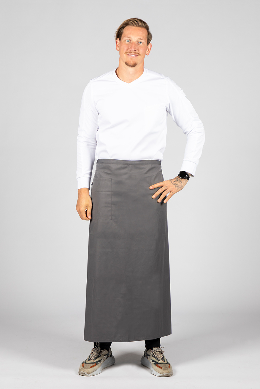 Deze sloof is geproduceerd van het materiaal panama, een stevige weeftechniek gemaakt van 65% polyester en 35% katoen 210 g/m2. Het materiaal is kleur echt en industrieel wasbaar. Al de door ons gebruikte materialen zijn OEKOTEX standaard 100 gecertificeerd.