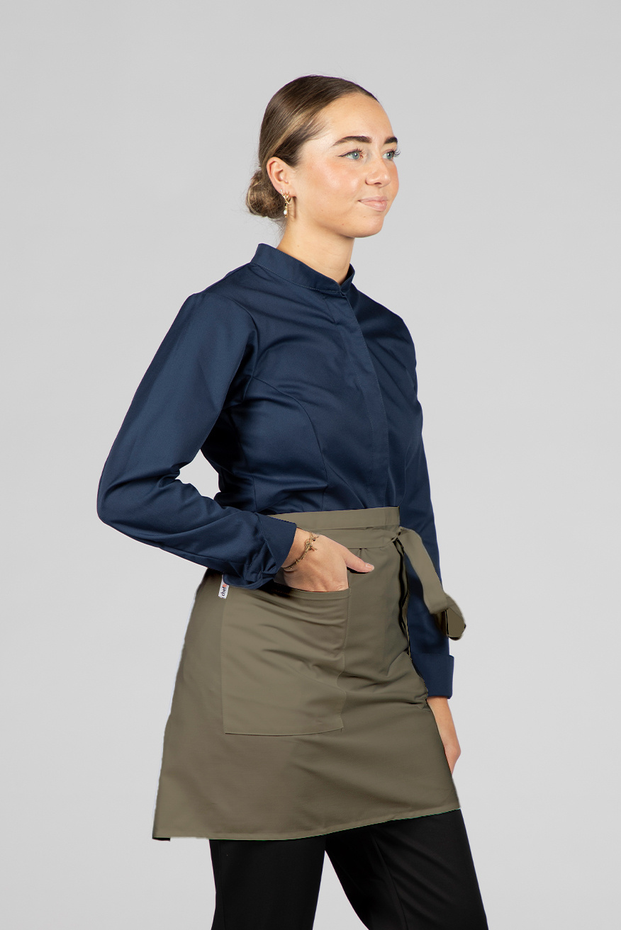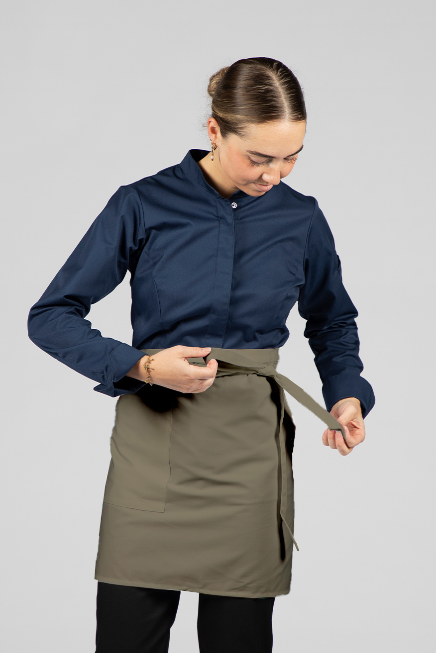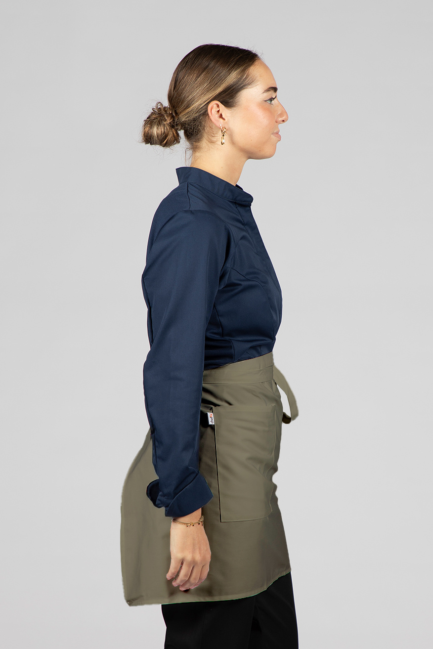 Deze sloof is geproduceerd van het materiaal panama, een stevige weeftechniek gemaakt van 65% polyester en 35% katoen 210 g/m2. Het materiaal is kleur echt en industrieel wasbaar. Al de door ons gebruikte materialen zijn OEKOTEX standaard 100 gecertificeerd.