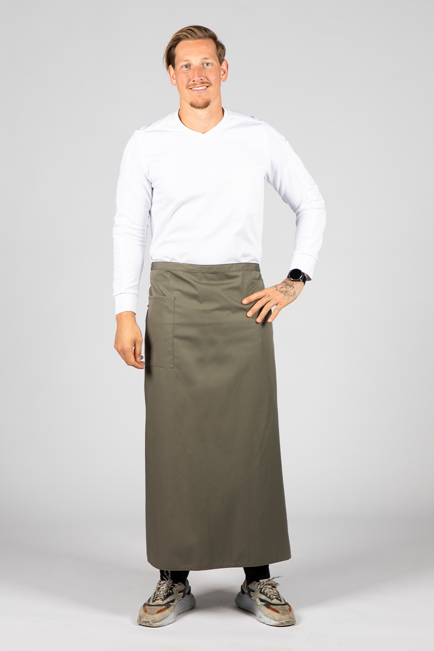 Deze sloof is geproduceerd van het materiaal panama, een stevige weeftechniek gemaakt van 65% polyester en 35% katoen 210 g/m2. Het materiaal is kleur echt en industrieel wasbaar. Al de door ons gebruikte materialen zijn OEKOTEX standaard 100 gecertificeerd.