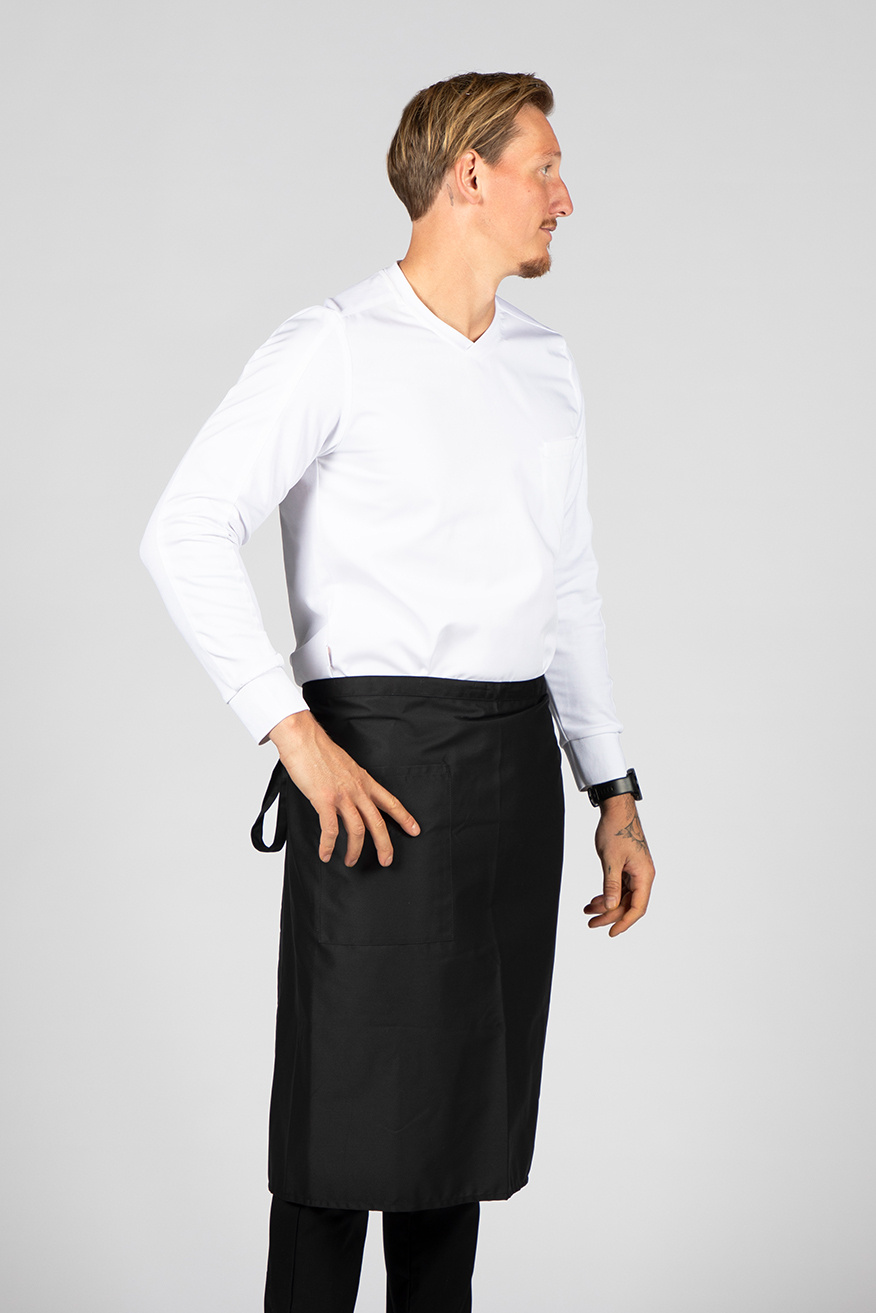 Deze sloof is geproduceerd van het materiaal panama, een stevige weeftechniek gemaakt van 65% polyester en 35% katoen 210 g/m2. Het materiaal is kleur echt en industrieel wasbaar. Al de door ons gebruikte materialen zijn OEKOTEX standaard 100 gecertificeerd.