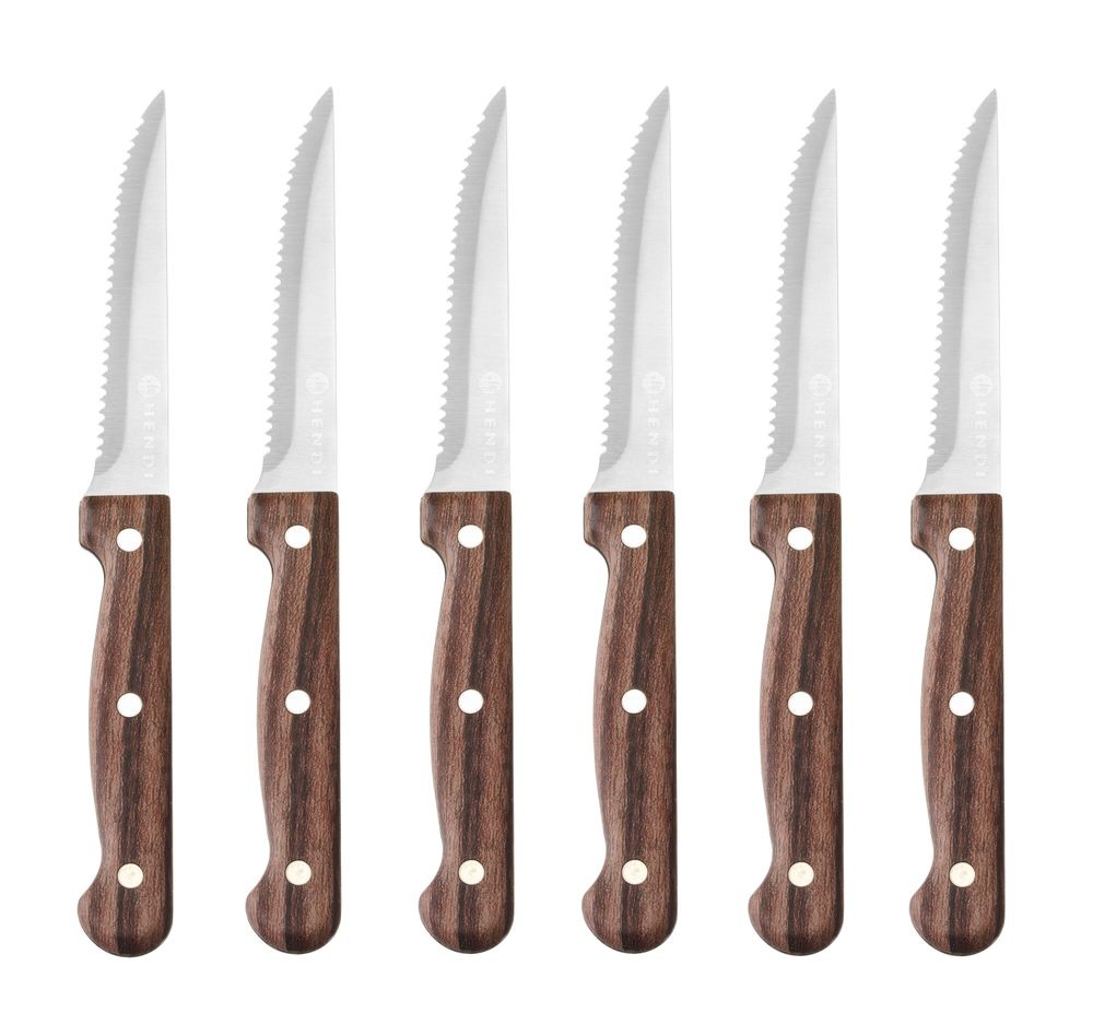 Steakmes kunststof bruin RVS | Lengte 210mm. | 6 stuks