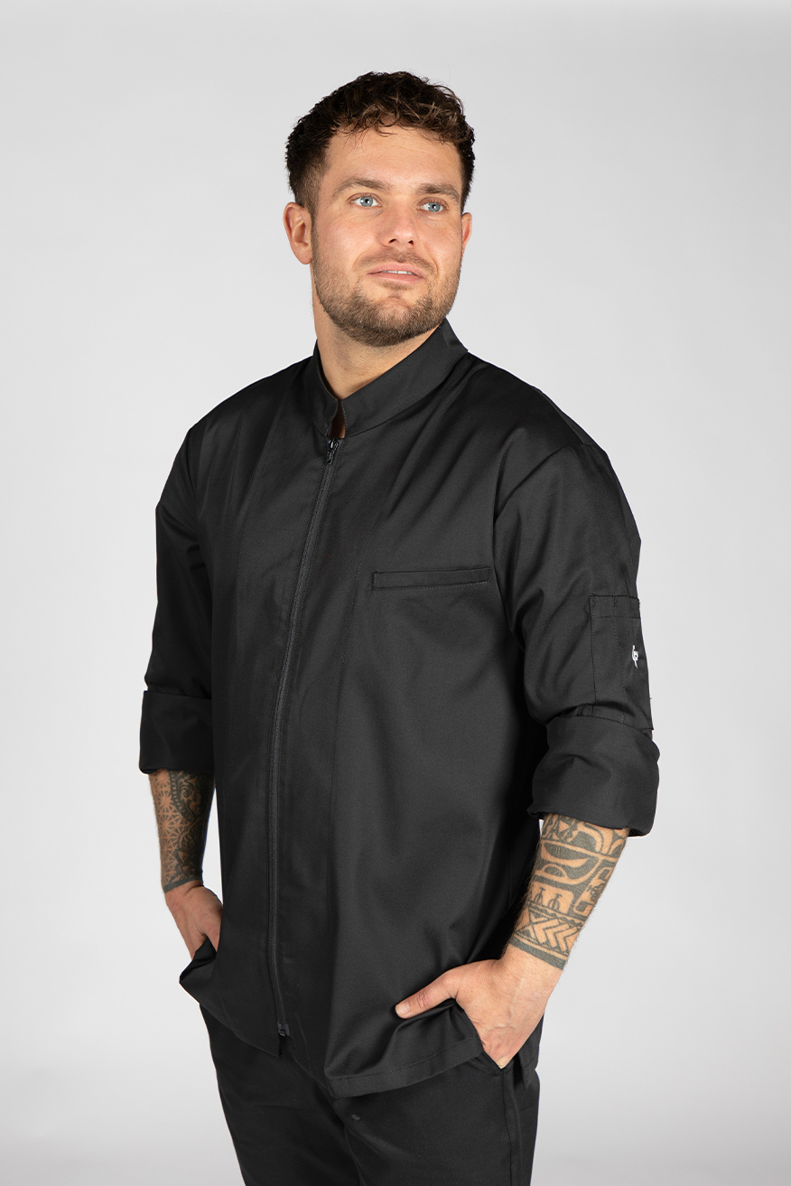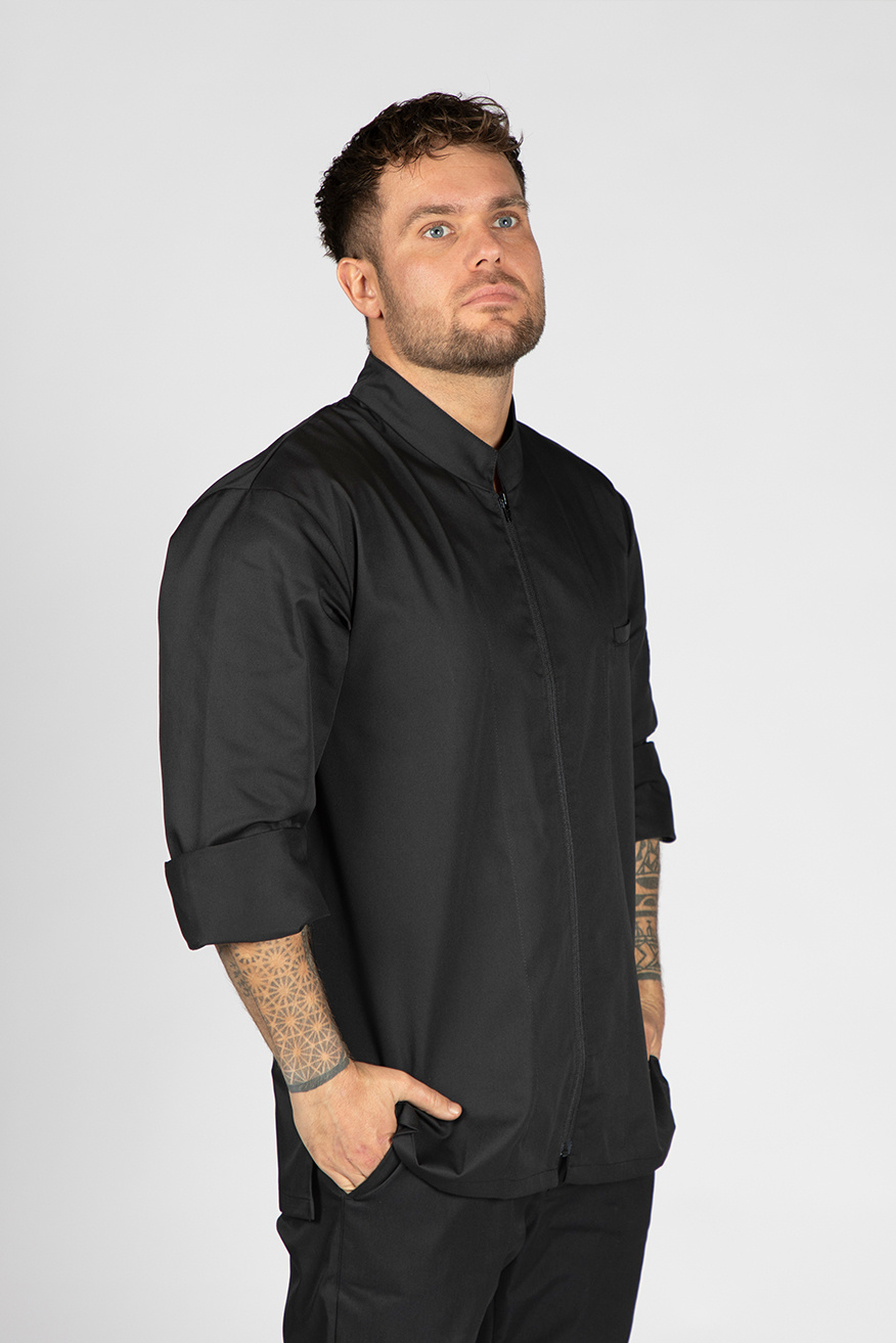 Taro koksbuis met ritssluiting voor heren zwart | Lange mouw en zijsplitten