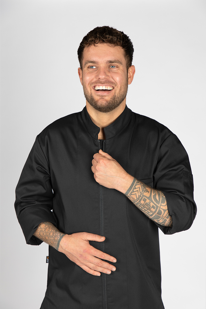 Met onze koksbuis Taro creëer je een stoere look. Deze koksbuis heeft een sluiting middenvoor met YKK rits, waardoor deze snel en gemakkelijk aan en uit te trekken is. Deze rits is tevens de eerste keuze van de professionele wasserij.