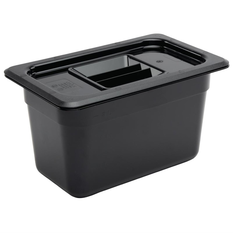 Vogue Polycarbonaat bak zwart GN 1/4 - 150mm | 265x162mm.