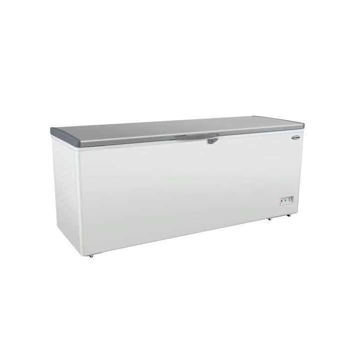 Dankzij de statische koeling wordt de temperatuur gelijkmatig behouden, ideaal voor langdurige opslag bij temperaturen onder -18°C. De stevige RVS deksel zorgt voor een duurzame afwerking en is eenvoudig te reinigen. Met een inhoud van 650 liter biedt deze vrieskist veel opslagruimte voor grotere hoeveelheden producten.