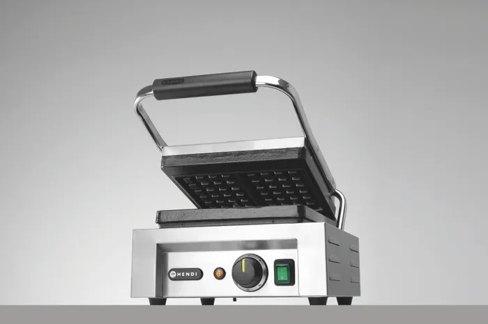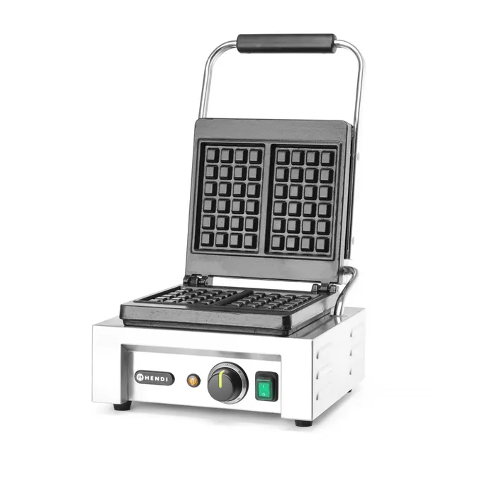 Wafelmaker Hendi - Luikse wafels, twee 4x6 rechthoekige patronen. Gietijzeren bakplaten met anti-aanbaklaag Thermostatische temperatuurregeling. Geïsoleerde handgreep. Inclusief wafelvork Lees meer