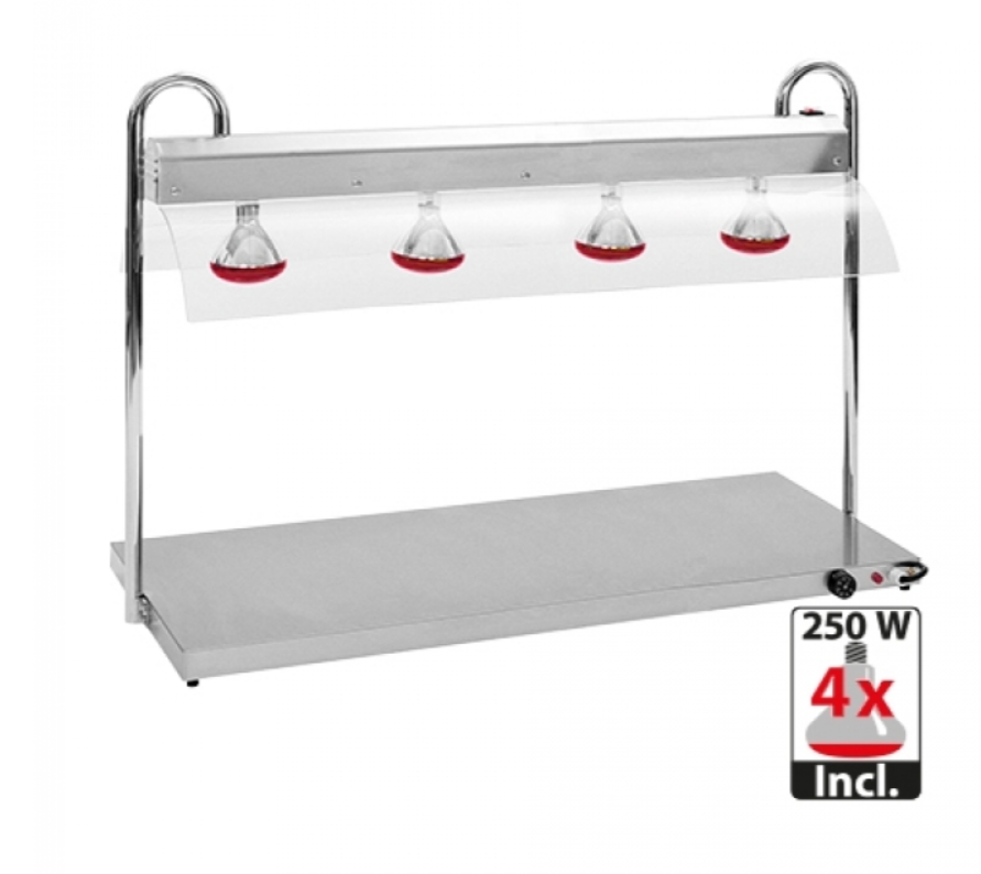 Warmhoudbrug met warmhoudplaat met 4x GN 1/1 | 230V/2500W | 30° tot 90°C | Lengte 135.6cm.